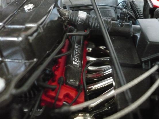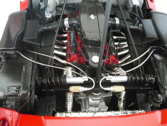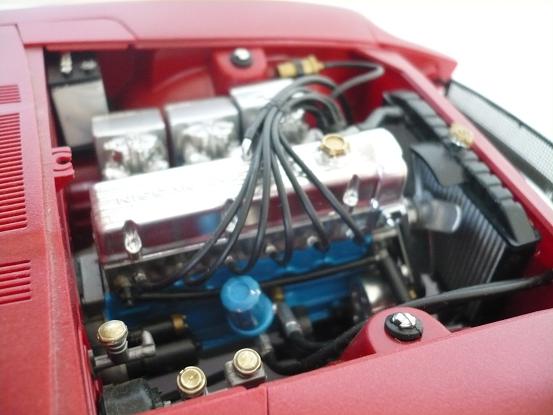 京商さんすごい技術や!タミヤさんもあるけど、どっちもほしいな~エキマニの角度と輝きもしびれる~!V8エンジンやったらホンマにタコアシやな!パチパチ・・・でもエアクリーナーもリアル!